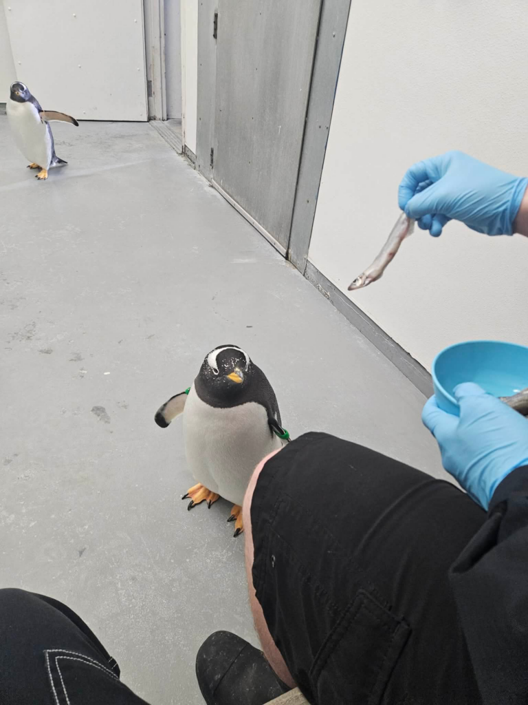 Luckily, the penguins know this weird little side room with fascinated humans is a reliable food source, so there was nothing to worry about.